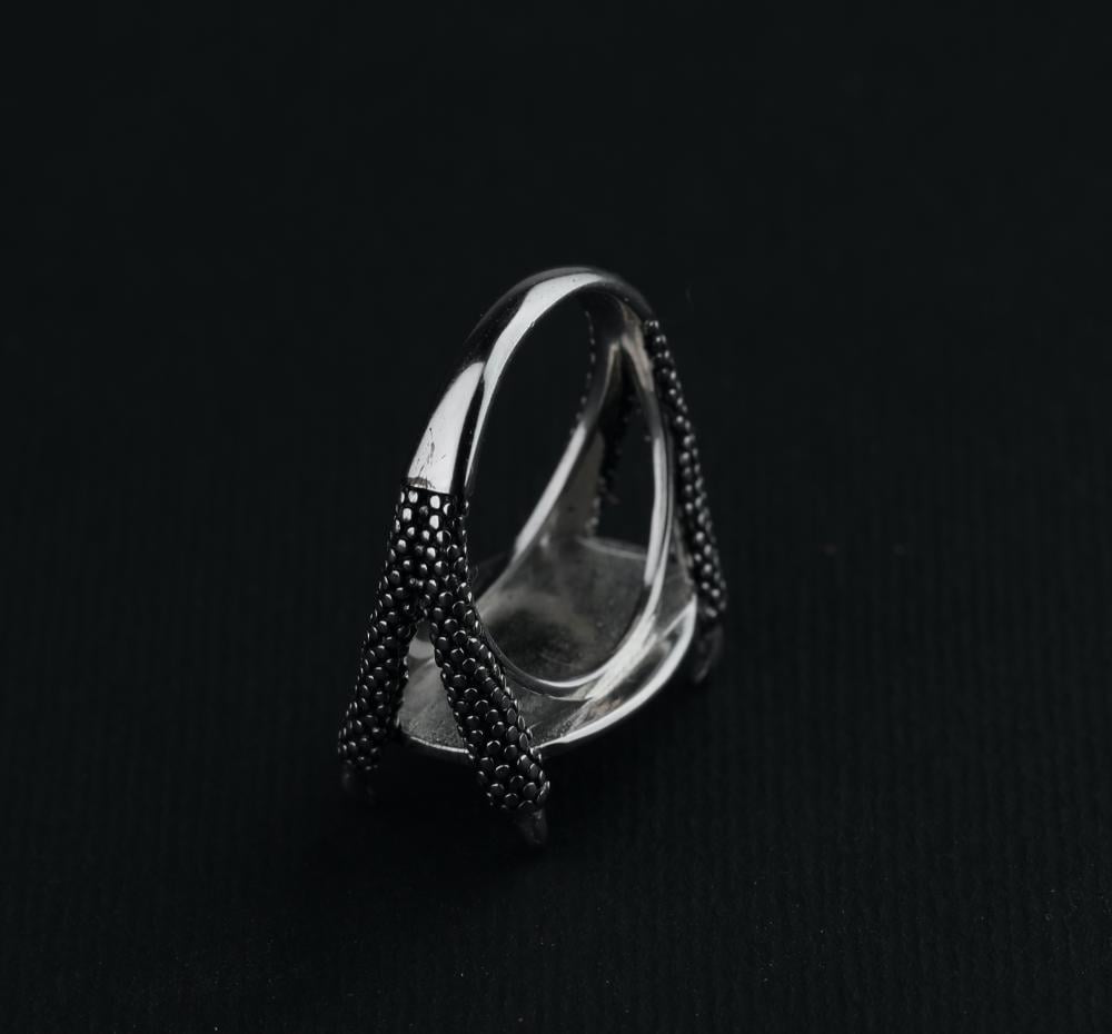 خاتم فضه مخالب صقر عيار 925 ازرق منقط بالابيض
