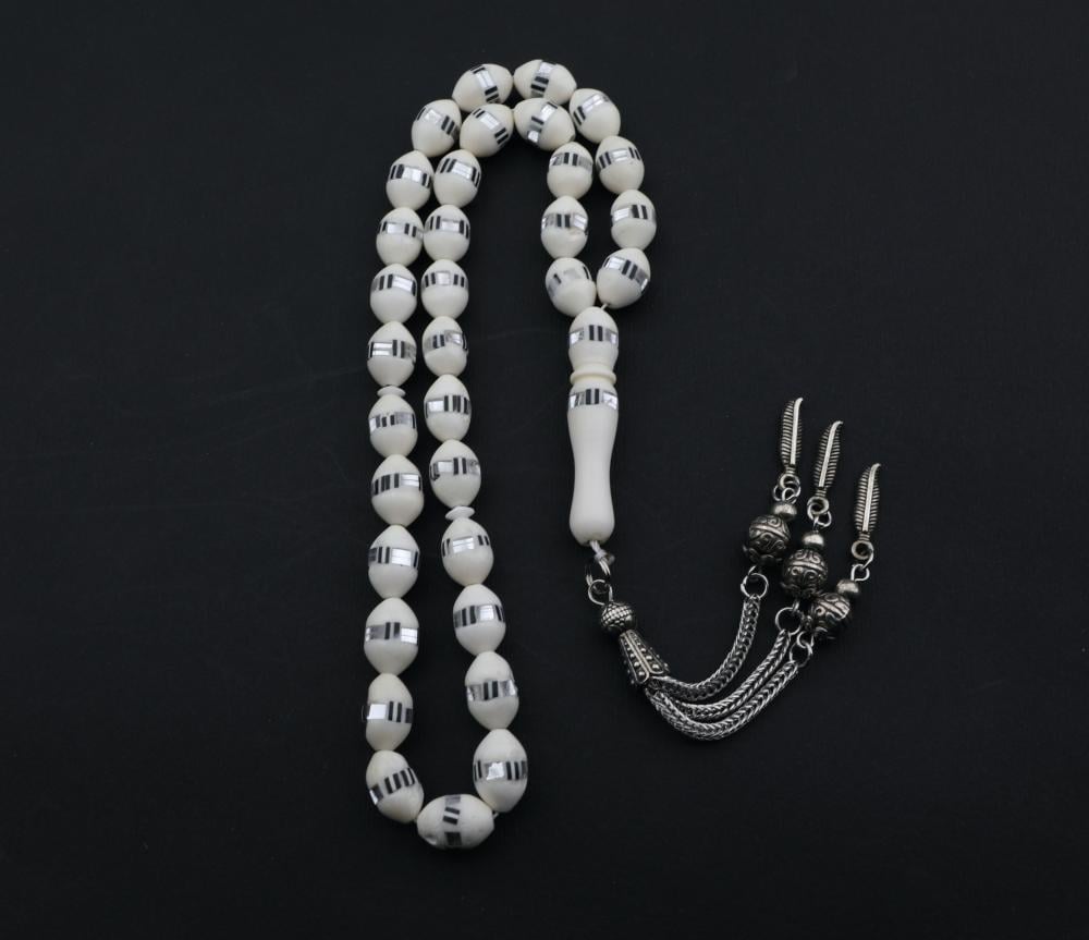 سبحه عظم ازرق وفضي خرز كبير